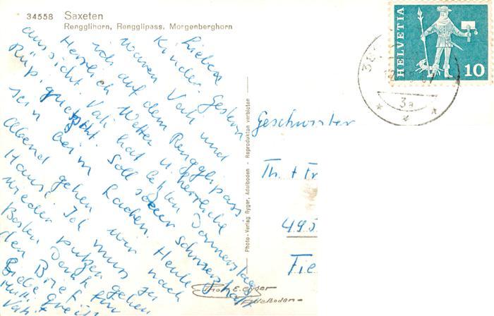 13915888 alte Postkarte Saxeten BE Rengglihorn Rengglipass Morgenberghorn postalisch gelaufen Erhaltung siehe scans [FriedD77] KatCode: 11470060175298