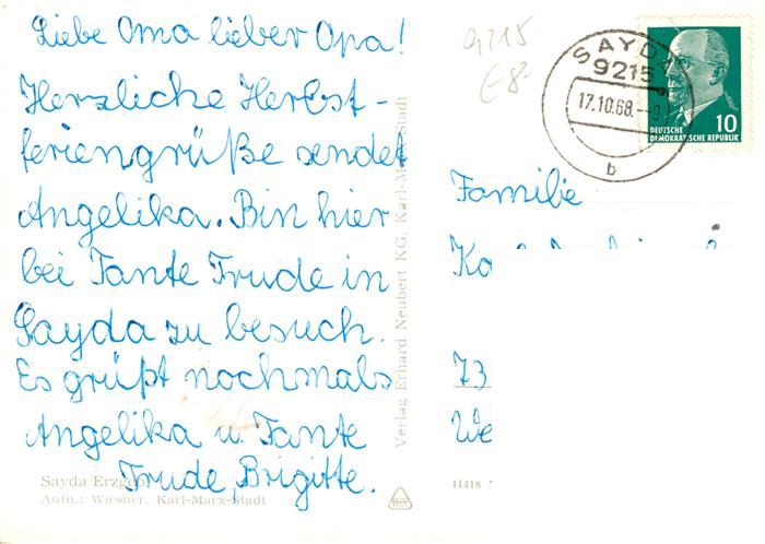 73908297 alte Postkarte Sayda Hauptstrasse Gasthaus postalisch gelaufen Erhaltung siehe scans [FriedD77] KatCode: 11110014177380