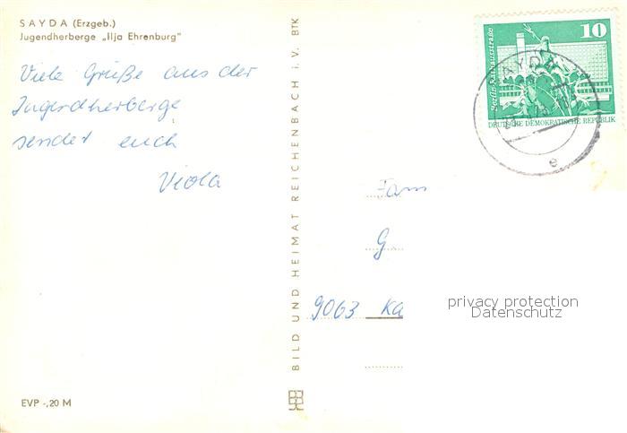 73723049 alte Postkarte Sayda Jugendherberge Ilja Ehrenburg postalisch gelaufen Erhaltung siehe scans [WerneD78] KatCode: 11110014177380