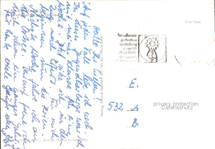 72183337 alte Postkarte Sayda Jugendherberge Ilja Ehrenburg postalisch gelaufen Erhaltung siehe scans KatCode: 11110014177380