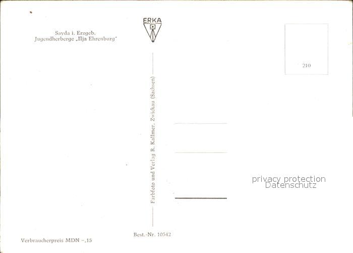 71963362 Sayda Jugendherberge Ilja Ehrenburg postalisch nicht gelaufen Erhaltung siehe scans KatCode: 11110014177380
