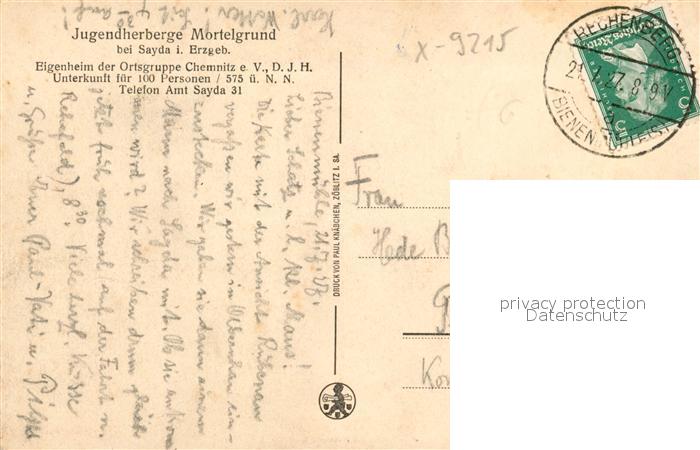 43329711 alte Postkarte Sayda Jugendherberge Mortelgrund postalisch gelaufen Erhaltung siehe scans [FriedD77] KatCode: 11110014177380