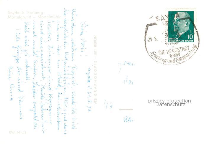 73867243 alte Postkarte Sayda Mortelmuehle und Mortelgrund postalisch gelaufen Erhaltung siehe scans [WerneD78] KatCode: 11110014177380