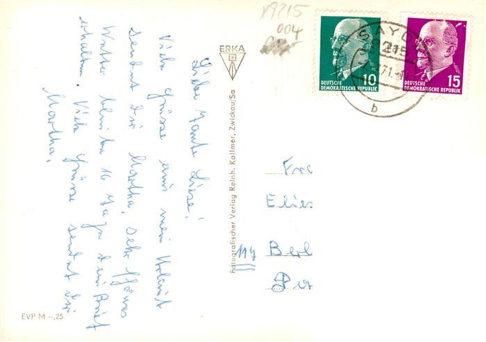 73907637 alte Postkarte Sayda Panorama Mortelgrund Jugendherberge Ilja Ehrenburg Ernst-Thaelmann-Strasse postalisch gelaufen Erhaltung siehe scans [FriedD77] KatCode: 11110014177380