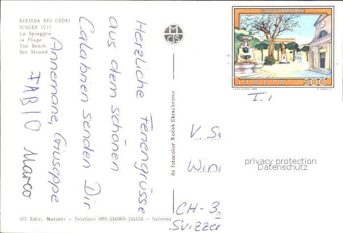 old postcard Scalea Spiaggia Strand Hotel Swimming Pool Riviera dei Cedri postalisch gelaufen Erhaltung siehe scans