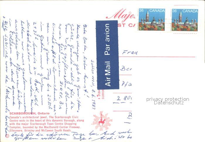 old postcard Scarborough Ontario Stadtansichten postalisch gelaufen Erhaltung siehe scans