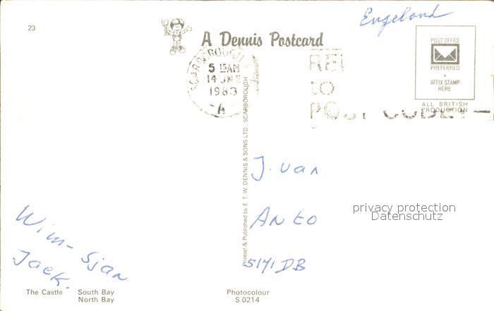 old postcard Scarborough UK The Castle South Bay North Bay postalisch gelaufen Erhaltung siehe scans