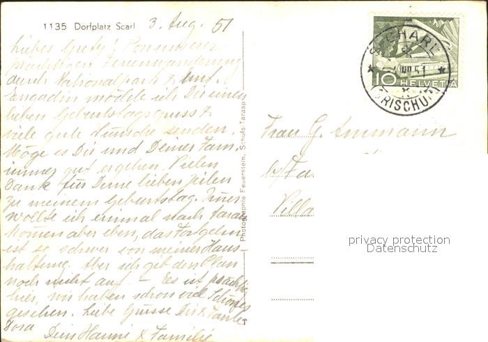11651430 alte Postkarte Scarl Dorfplatz Brunnen postalisch gelaufen KatCode: 11470100325156