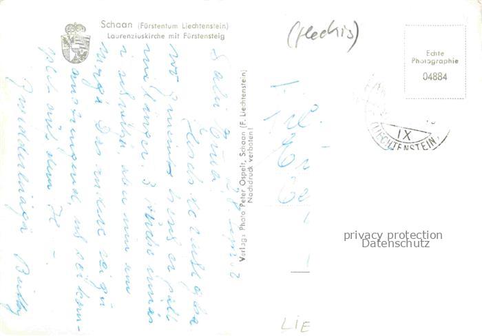 74020578 alte Postkarte Schaan Liechtenstein FL Laurentiuskirche mit Fuerstensteig postalisch gelaufen Erhaltung siehe scans [WerneD78] KatCode: 11280100100700