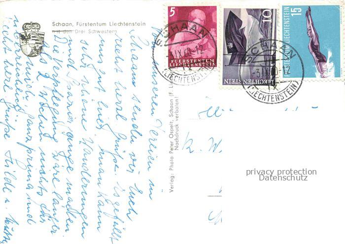 74136639 alte Postkarte Schaan Liechtenstein FL mit den Drei Schwestern postalisch gelaufen Erhaltung siehe scans [WerneD78] KatCode: 11280100100700