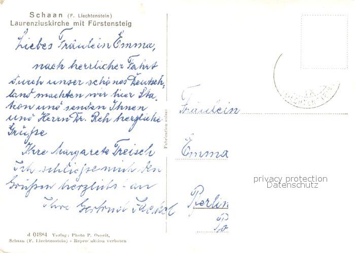 13665153 alte Postkarte Schaan Liechtenstein Laurenziuskirche mit Fuerstensteig postalisch gelaufen Erhaltung siehe scans [FriedD77] KatCode: 11280130000000