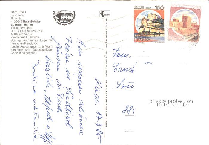 old postcard Schabs Garni Trins postalisch gelaufen Erhaltung siehe scans