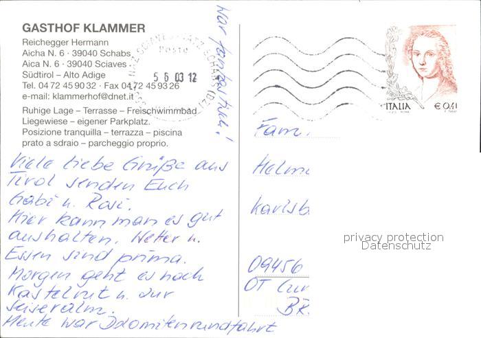 old postcard Schabs Gasthaus Klammer postalisch gelaufen Erhaltung siehe scans