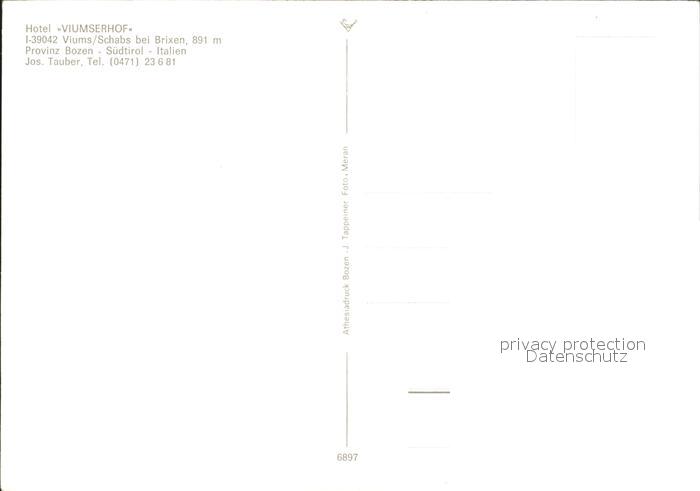 Schabs Hotel Viumserhof postalisch nicht gelaufen Erhaltung siehe scans