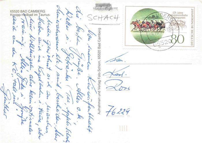 74036118 Schach Chess Echecs (auf Postkarte)– Bad Camberg Taunus postalisch gelaufen Erhaltung siehe scans [IrynaD87] alte Postkarte Iryn Katcode 22520000000100