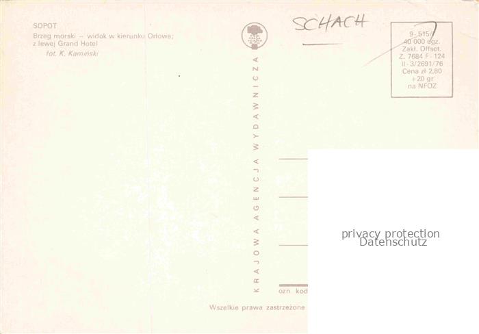74086420 Schach Chess Echecs (auf Postkarte)– Sopot Brzeg morski Ortowa postalisch nicht gelaufen Erhaltung siehe scans [IrynaD87] Iryn Katcode 22520000000100