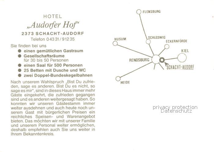 73087655 Schacht-Audorf Hotel Audorfer Hof postalisch nicht gelaufen Werbekarte (keine Postkarte) Erhaltung siehe scans [KathaD81] KatCode: 11110001058140