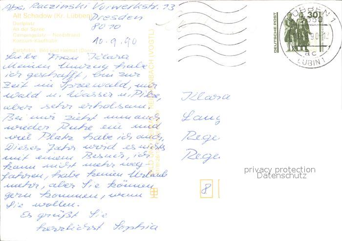 72118973 alte Postkarte Schadow Dorfplatz Spree Campingplatz Konsum Kaufhalle postalisch gelaufen Erhaltung siehe scans KatCode: 11110012067137