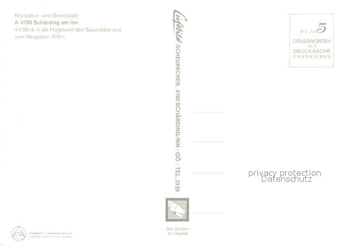 73157901 Schaerding Blick in Huegelwelt des Sauwaldes und zum Haugstein Fliegeraufnahme postalisch nicht gelaufen Erhaltung siehe scans [FriedD77] KatCode: 11390311041422