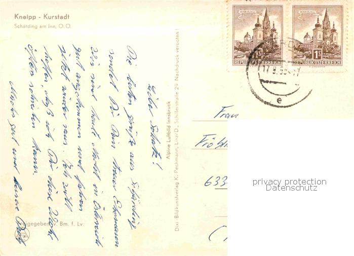 72902788 alte Postkarte Schaerding Fliegeraufnahme postalisch gelaufen Erhaltung siehe scans [AndreD76] KatCode: 11390311041422