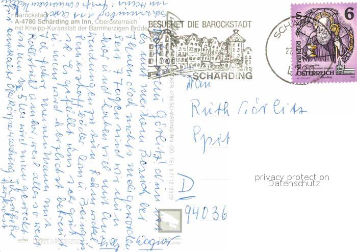 72849126 alte Postkarte Schaerding Fliegeraufnahme postalisch gelaufen Erhaltung siehe scans [AndreD76] KatCode: 11390311041422