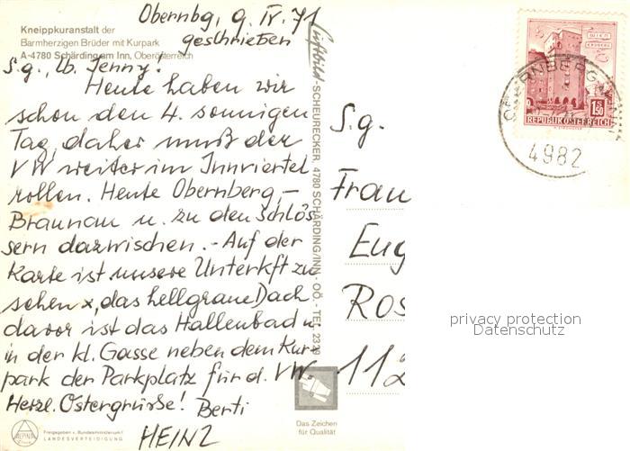 73168810 alte Postkarte Schaerding Fliegeraufnahme Kneippkuranstalt Barmherzige Brueder postalisch gelaufen Erhaltung siehe scans [KathaD81] KatCode: 11390311041422