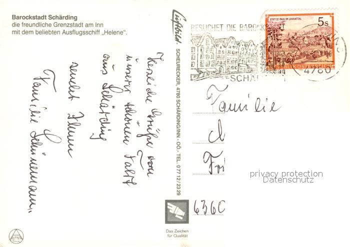 13217665 alte Postkarte Schaerding Grenzstadt am Inn Ausflugsschiff Helene postalisch gelaufen Erhaltung siehe scans [FriedD77] KatCode: 11390311041422
