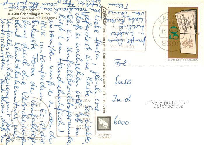 73336804 alte Postkarte Schaerding Inn Fliegeraufnahme mit Alpenpanorama postalisch gelaufen Erhaltung siehe scans [WerneD78] KatCode: 11390311041422