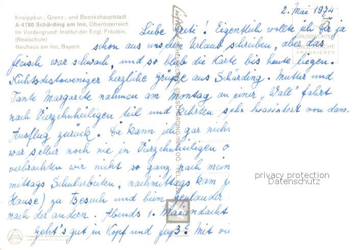 73744860 Schaerding Inn Fliegeraufnahme mit Institut der Engl Fraeulein Schloss Neuhaus postalisch nicht gelaufen Erhaltung siehe scans [FriedD77] KatCode: 11390311041422