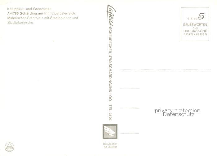 73358580 Schaerding Inn Stadtplatz mit Stadtbrunnen und Kirche postalisch nicht gelaufen Erhaltung siehe scans [WerneD78] KatCode: 11390311041422