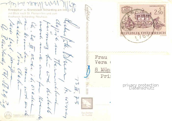 72673344 alte Postkarte Schaerding Kneippkurort Grenzstadt am Inn Fliegeaufnahme postalisch gelaufen Erhaltung siehe scans [FriedD77] KatCode: 11390311041422