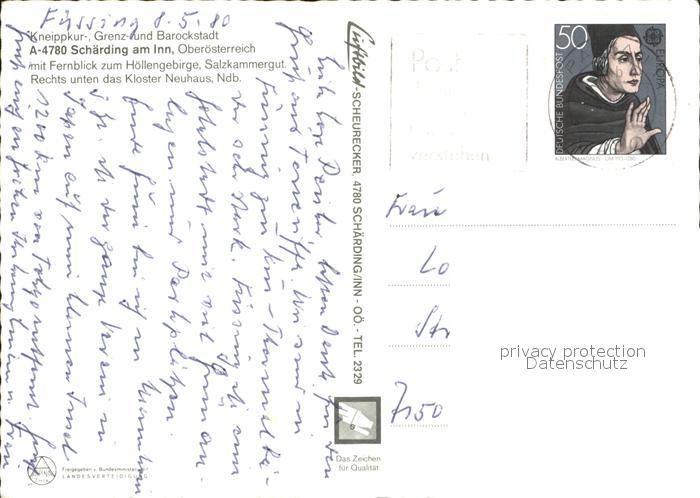 72215350 alte Postkarte Schaerding mit Hoellengebirge und Kloster Neuhaus Fliegeraufnahme postalisch gelaufen Erhaltung siehe scans KatCode: 11390311041422
