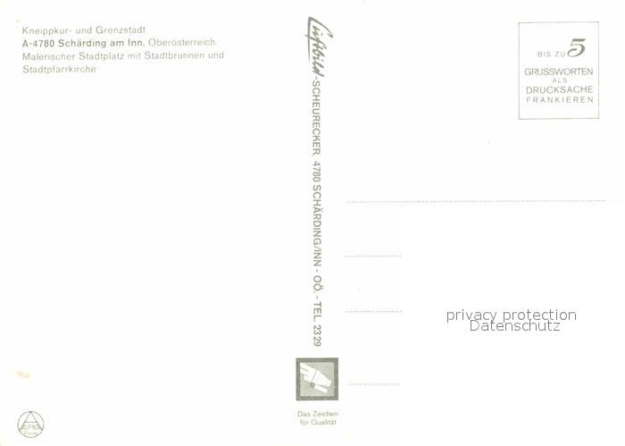 72618264 Schaerding Stadtplatz Brunnen Stadtpfarrkirche Kneippkurort Grenzstadt postalisch nicht gelaufen Erhaltung siehe scans [FriedD77] KatCode: 11390311041422