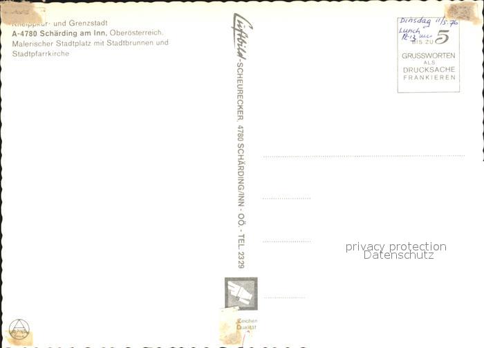 72428884 Schaerding Stadtplatz mit Stadtbrunnen und Stadtpfarrkirche postalisch nicht gelaufen Erhaltung siehe scans KatCode: 11390311041422