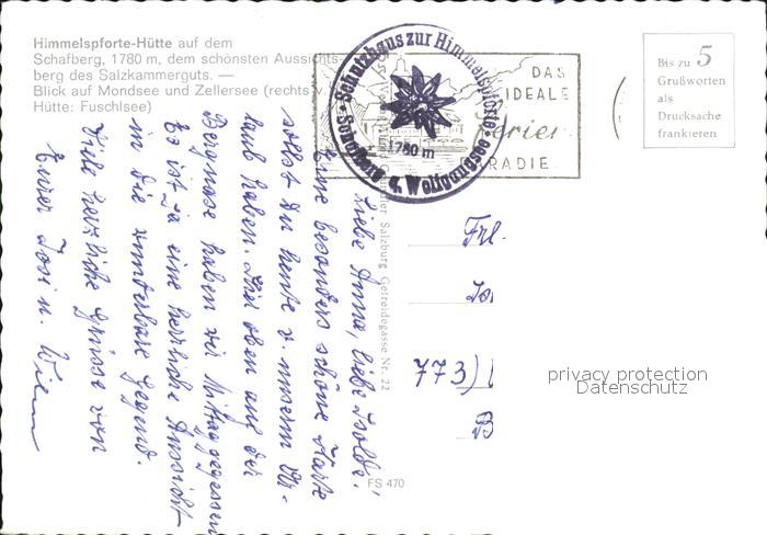 72482579 alte Postkarte Schafberg Attersee Himmelspfort Huette Mondsee Zellersee Fuschlsee postalisch gelaufen Erhaltung siehe scans KatCode: 11390315041702