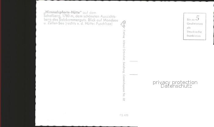 71962126 Schafberg Salzkammergut Himmelspforte-Huette Fliegeraufnahme postalisch nicht gelaufen Erhaltung siehe scans KatCode: 11390