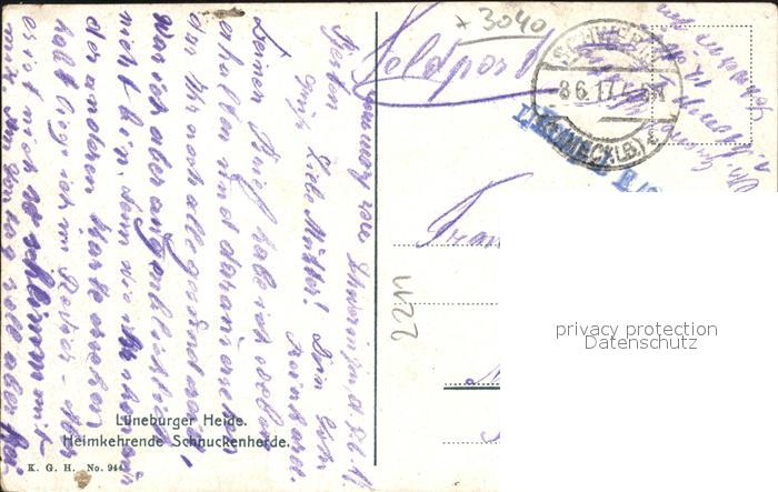 alte Postkarte Schafe Hirte Lueneburger Heide Heimkehrende Schnuckenherde postalisch gelaufen Feldpost Erhaltung siehe scans