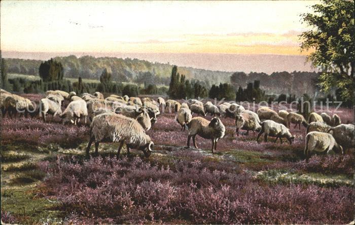 alte Postkarte Schafe Lueneburger Heide Weidende Heidschnucken postalisch gelaufen Feldpost Erhaltung siehe scans