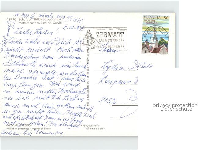 alte Postkarte Schafe Riffelsee Zermatt Matterhorn postalisch gelaufen Erhaltung siehe scans