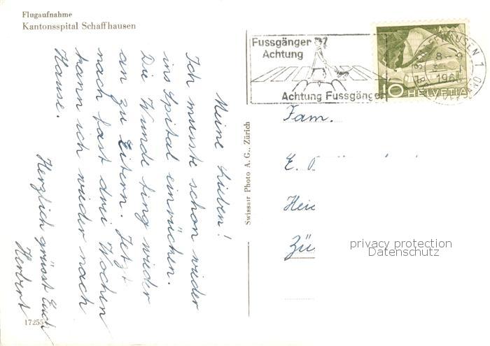 13868602 alte Postkarte Schaffhausen SH Kantonsspital Fliegeraufnahme postalisch gelaufen Erhaltung siehe scans [WerneD78] KatCode: 11470160460372