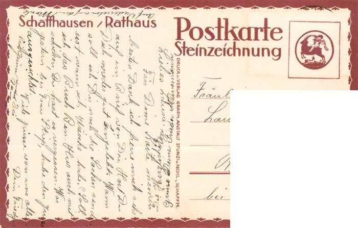 13908475 Schaffhausen SH Rathaus Steinzeichnung postalisch nicht gelaufen Erhaltung siehe scans [FriedD77] KatCode: 11470160460372