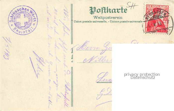34144525 alte Postkarte SCHAFFHAUSEN SH Rheinfall Schloesschen Woerth Dampflokomotive Eisenbahn Kuenstlerkarte postalisch gelaufen Erhaltung siehe scans [FriedD77] KatCode: 11470160460372