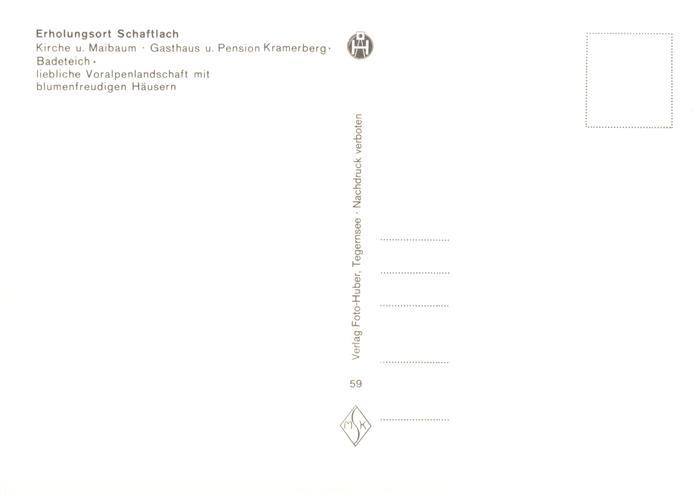73891719 Schaftlach Kirche und Maibaum Gasthaus Pension Kramerberg Badeteich Voralpenlandschaft mit blumenfreudigen Haeusern postalisch nicht gelaufen Erhaltung siehe scans [WerneD78] KatCode: 11110009182134