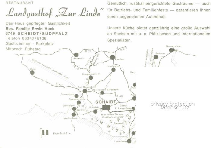 72882045 Schaidt Restaurant Landgasthof Zur Linde postalisch nicht gelaufen Werbekarte (keine Postkarte) Erhaltung siehe scans [FriedD77] KatCode: 11110007334501
