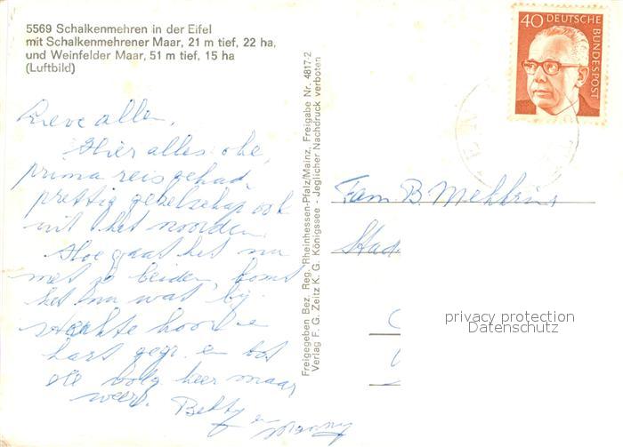 73645617 alte Postkarte Schalkenmehren Fliegeraufnahme mit Schalkenmehrener Maar und Weinfelder Maar postalisch gelaufen Erhaltung siehe scans [WerneD78] KatCode: 11110007233063