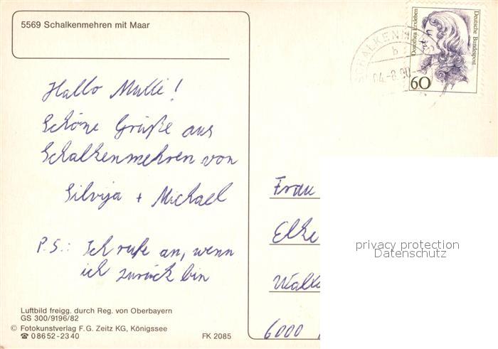 73072033 alte Postkarte Schalkenmehren Maar Fliegeraufnahme postalisch gelaufen Erhaltung siehe scans [NatalD47] KatCode: 11110007233063