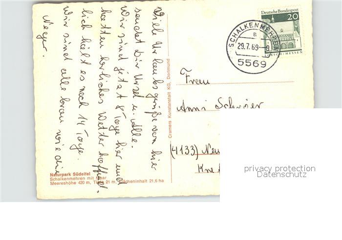 72538597 alte Postkarte Schalkenmehren Naturpark Suedeifel mit Maar postalisch gelaufen Erhaltung siehe scans [WerneD78 kt117box] KatCode: 11110007233063