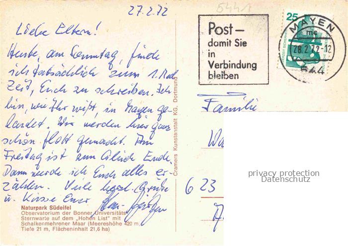 74050365 alte Postkarte Schalkenmehren Vulkaneifel Schalkenmehrener Maar postalisch gelaufen Fliegeraufnahme Erhaltung siehe scans [WerneD78] KatCode: 11110007233063