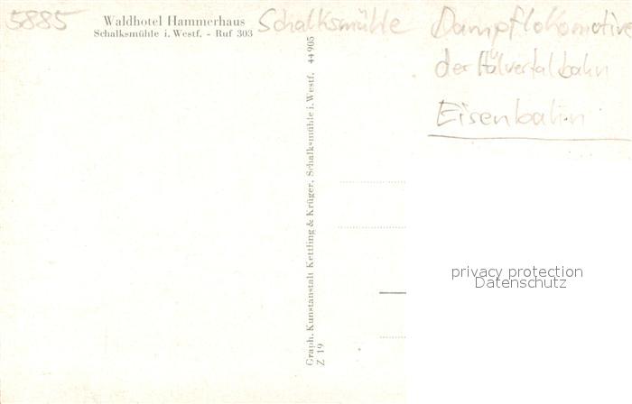 73700144 Schalksmuehle Waldhotel Hammerhaus Dampflokomotive d. Hoelvertalbahn Eisenbahn postalisch nicht gelaufen Erhaltung siehe scans [LiesaD40] KatCode: 11110005962056