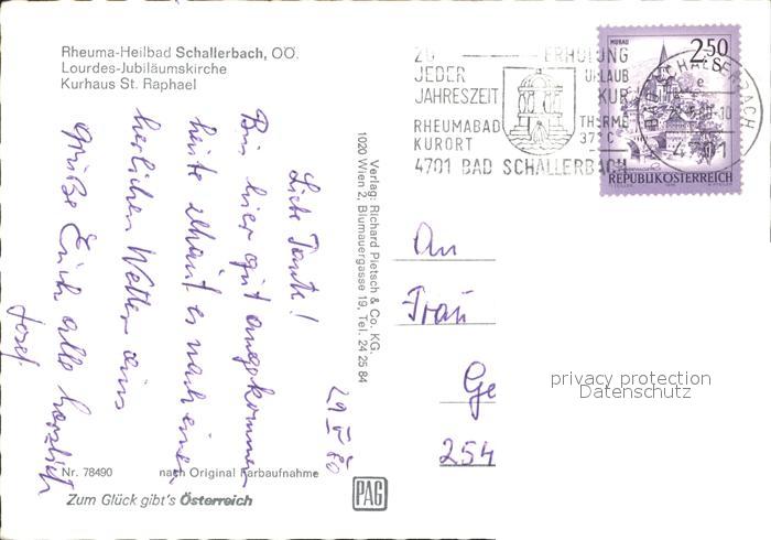 72465806 alte Postkarte Schallerbach Bad Lourdes Jubilaeumskirche Kurhaus St Raphael postalisch gelaufen Erhaltung siehe scans KatCode: 11390311040802